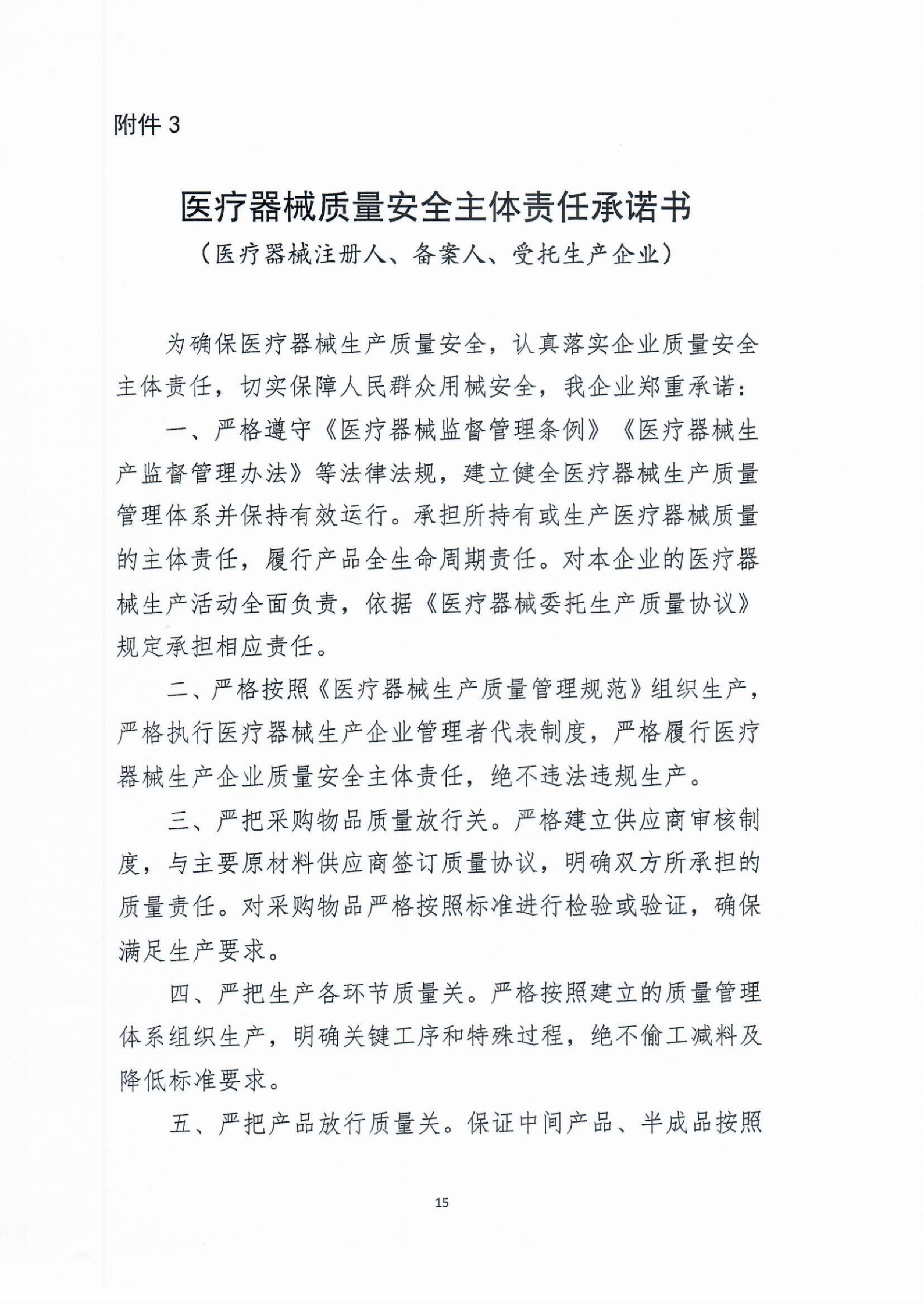 医疗器械质量安全主体责任承诺书